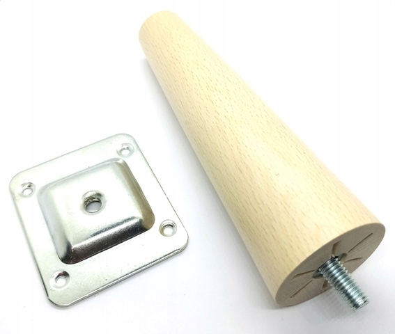Nóżka meblowa drewniana, wykonana z drewna bukowego, lakierowana, gotowa do montażu.